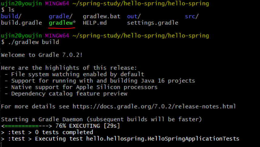1. cmd 혹은 git bash를 사용해서 프로젝트의 gradlew가 있는 경로로 이동한다