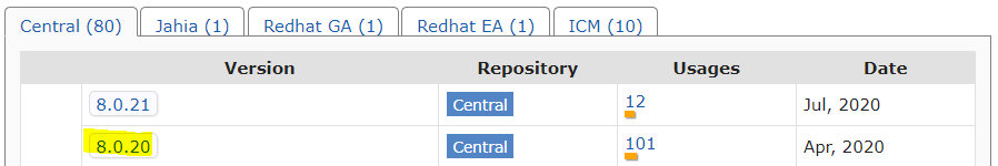현재 설치된 버전이 8.0.20이기때문에 8.0.20을 클릭해준다.