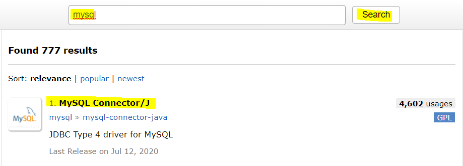 먼저 mysql에 status;를 입력하면 버전이 나오는데, 자신의 mysql버전을 확인한후에 https://mvnrepository.com/