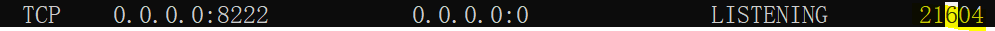 여러 리스트들이 뜨는데, ctrl+f 눌러서 포트번호(8222)검색 - 마지막에 21604 가 pid