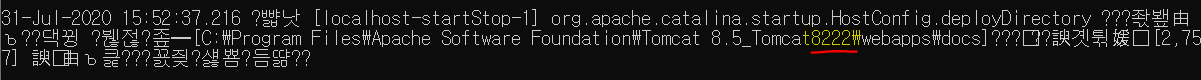 으로 들어가면 startup.bat 이라는 파일이 있는데 클릭하면 포트번호를 확인할 수 있다.(그때 8222로 설정했었음!)