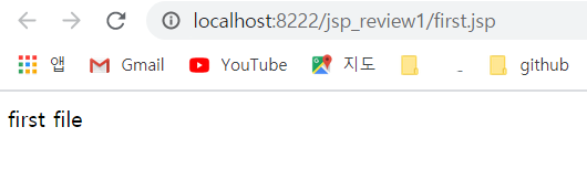 생성한 프로젝트(jsp_review1) - WebContent - ctrl+n - jsp file - file 이름 설정(first.jsp로 했음)