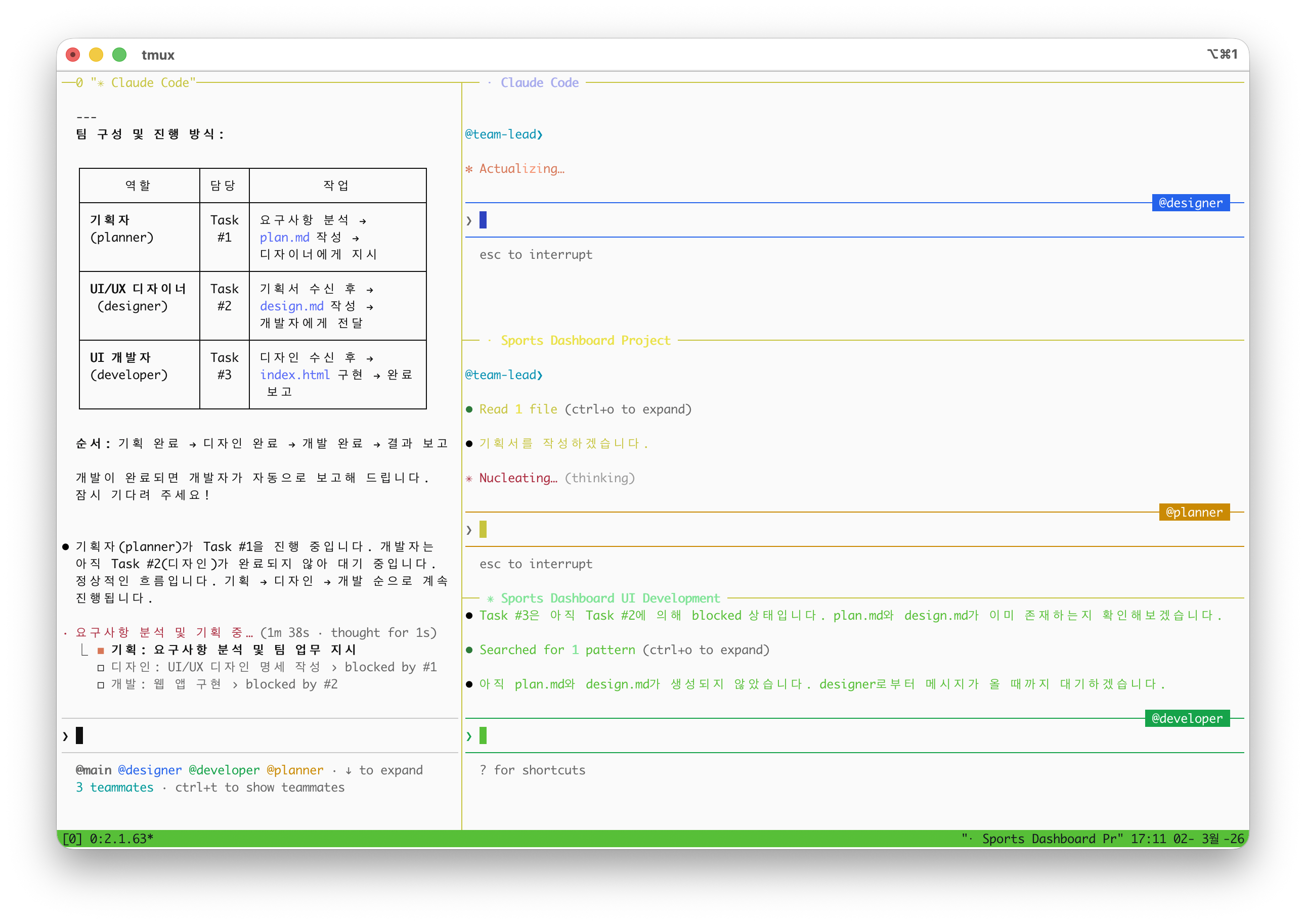 저는 Split Pane 모드를 사용하려고 tmux도 설치했습니다.